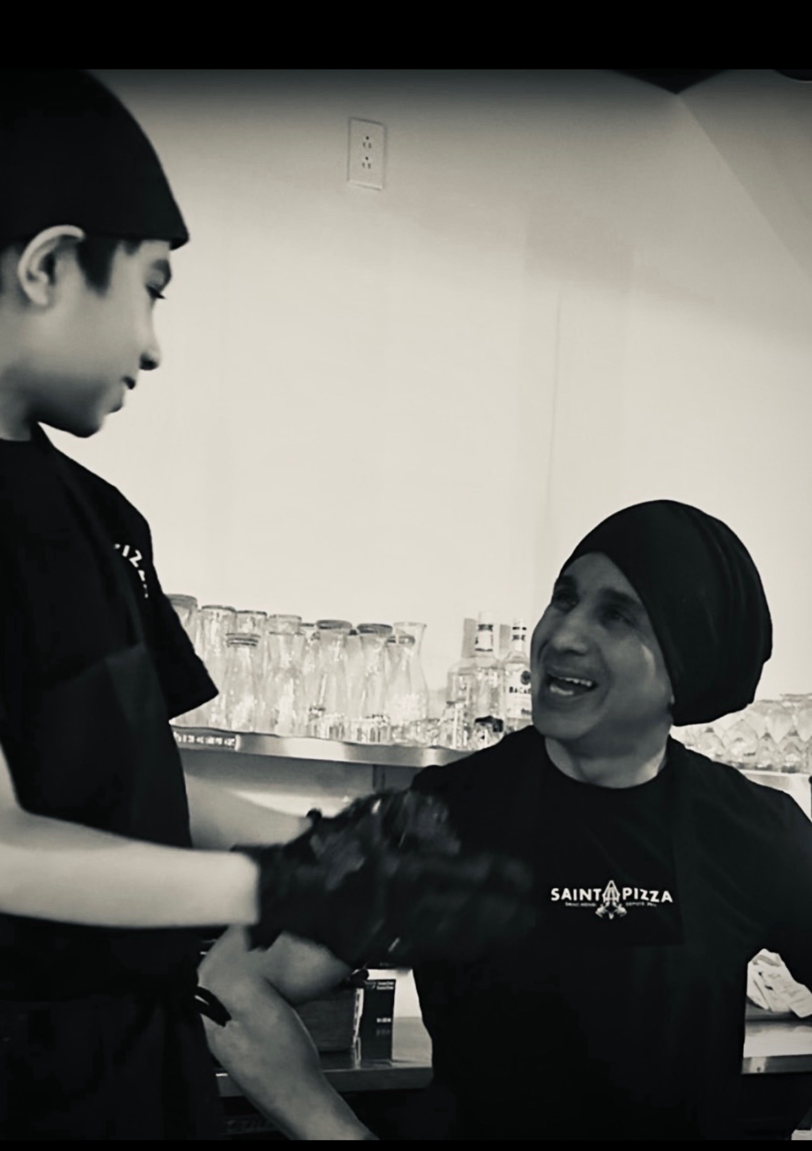 If you stop by, you’ll often see us together — sleeves rolled up, flour everywhere — making delicious pizza side by side.